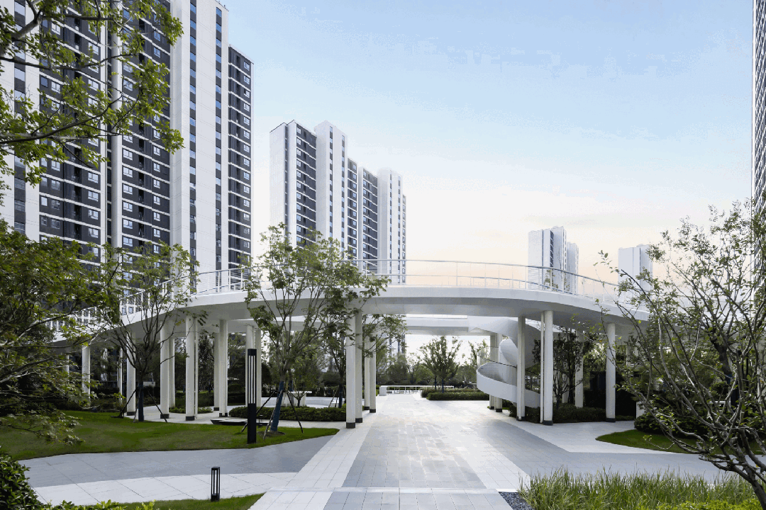时代公园、太仓塘滨水公园等优渥的生态资源。进入社区内部,则又是另一番景致。