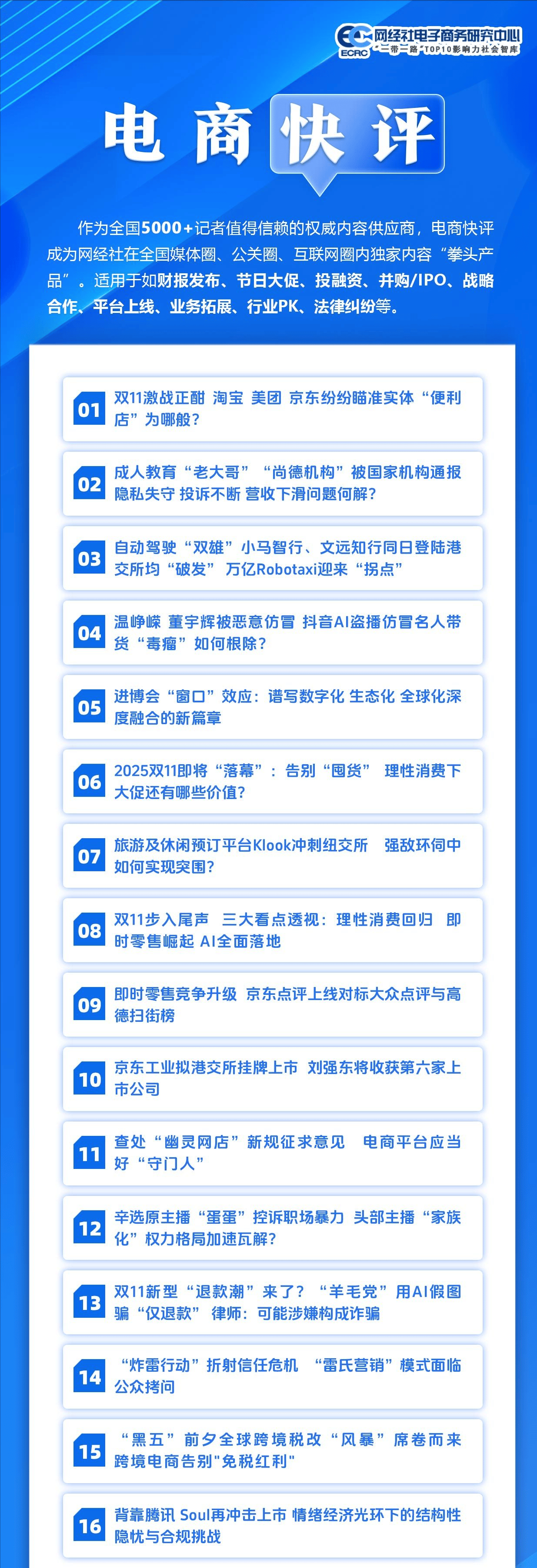 2、网经社:《2025年10月暨双11上半程中国电子商务用户体验与投诉数据报告》发布